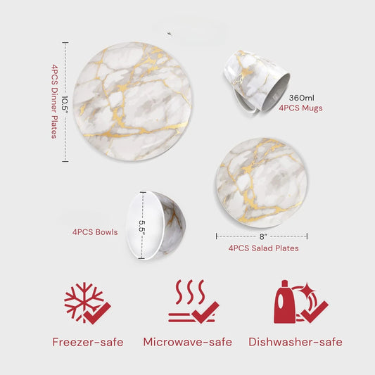Marble Plates and Bowls Sets, Modern Kitchen 16-Piece Dinnerware Sets