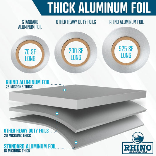 Rhino Pro Aluminum Foil Roll - 18" x 525 ft, 25 Microns Thick, Heavy-Duty & Versatile for Kitchens