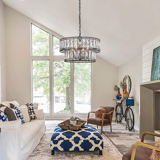 Sophisticated 2-Tier Crystal Chandelier - 4-Light Elegance for Dining & Living Spaces, 15.5" Diameter