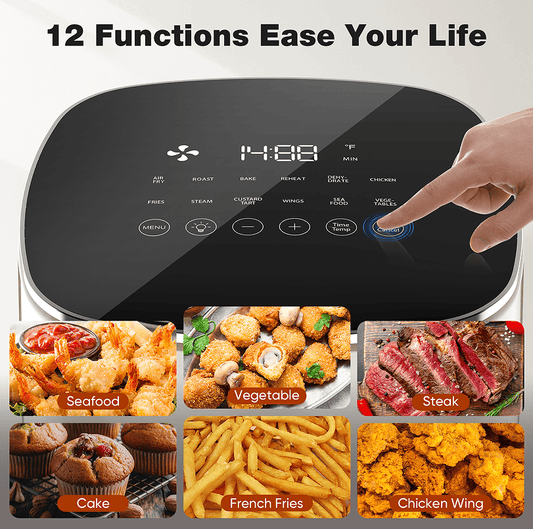 W2201P241267 6L Smart Oil-Free Steamer Air Fryer - 12-in-1 Air Roast, Fry, Reheat, Dehydrate - Low-Fat Cooking - 1700W Electric Oven - Non-Stick Cooker