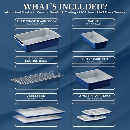 8-Piece Stackable Bakeware Set - Ceramic Non-Stick Coating, Baking Sheets, Assorted Baking Pans, PTFE, PFOA & PFOS Free