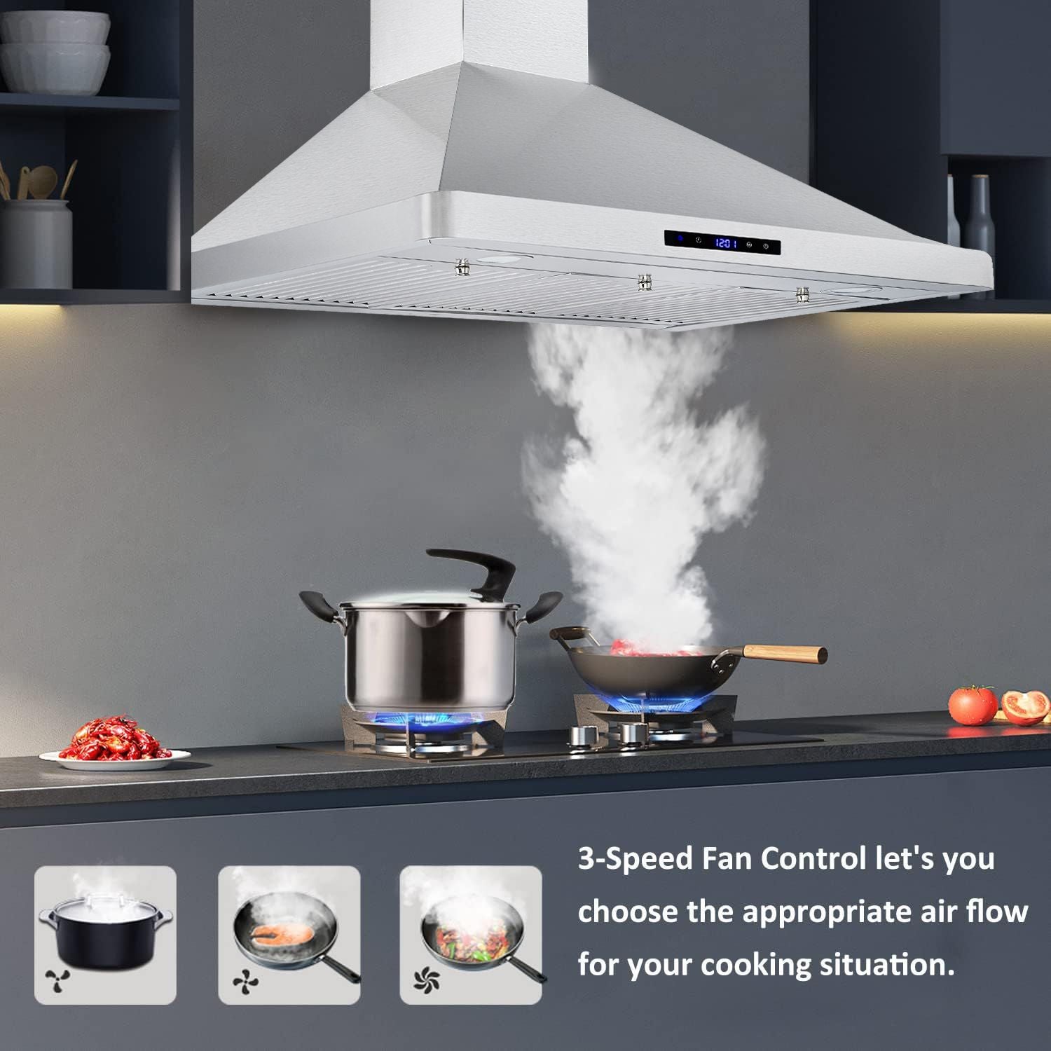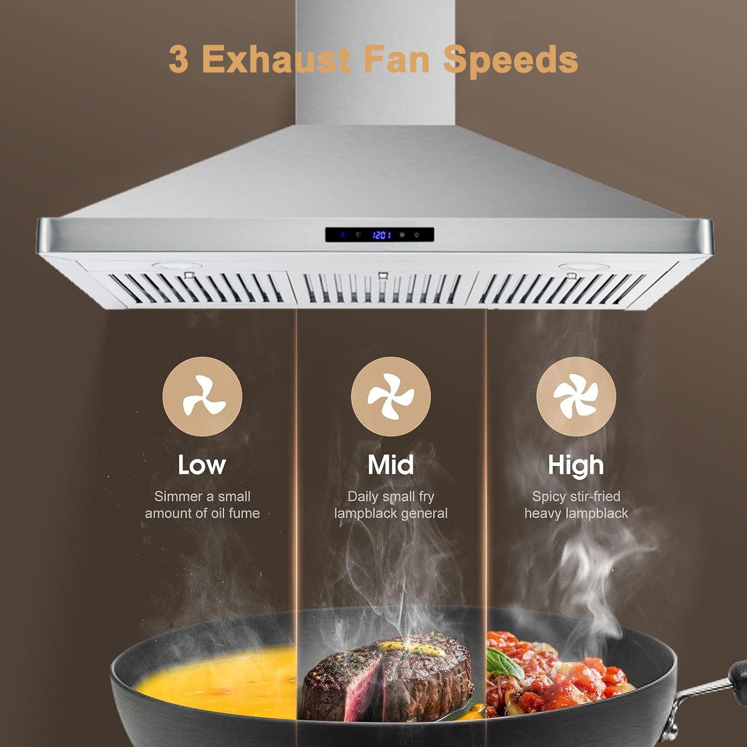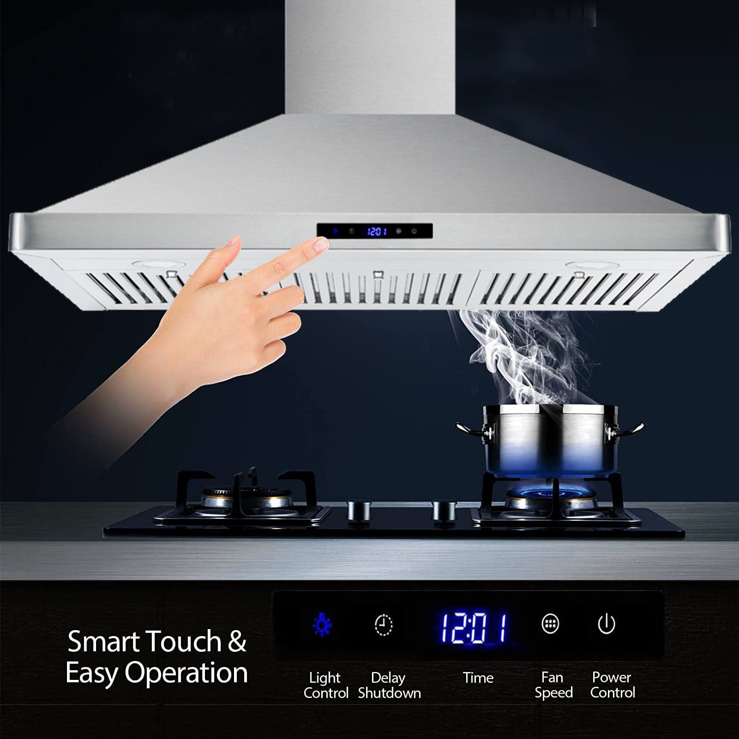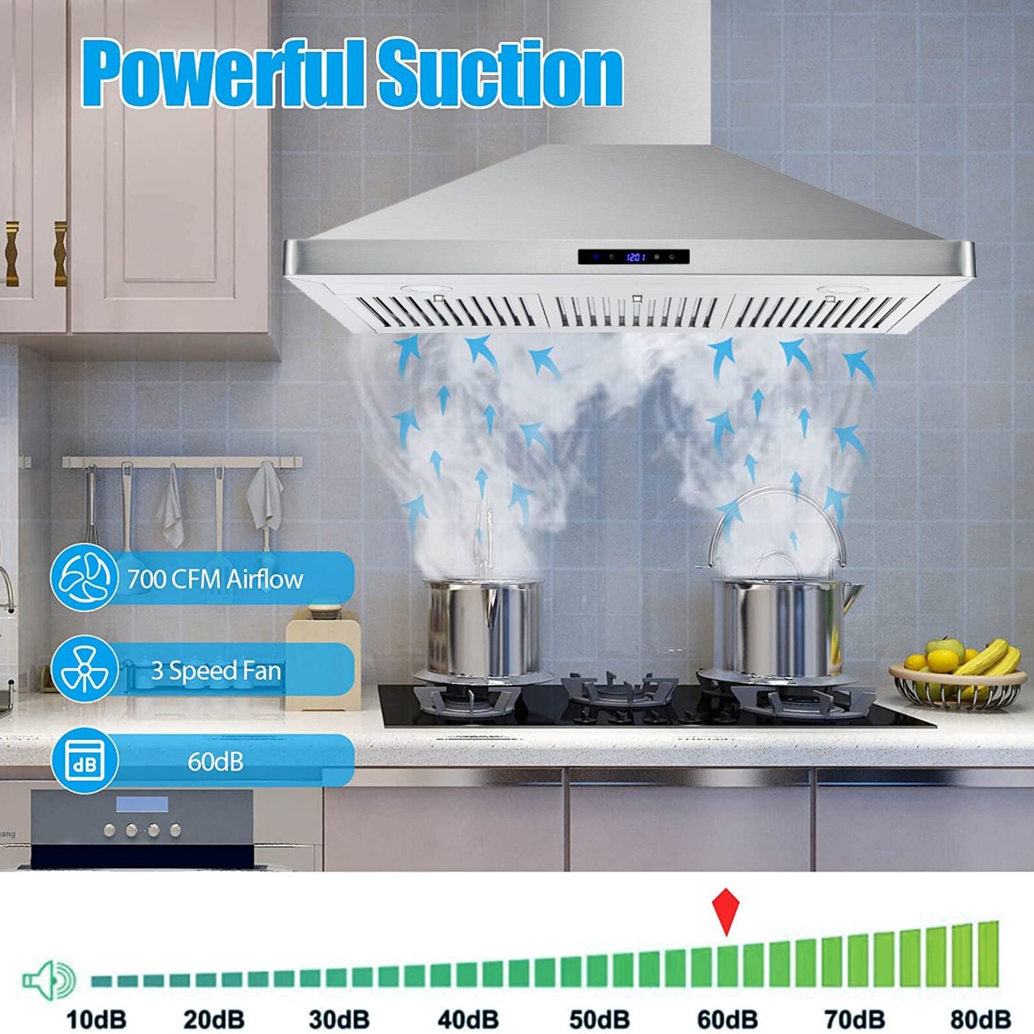 30/36 inch Range Hood 700CFM Wall Mount Stainless Steel Touch Control 3-speed Stove Vent