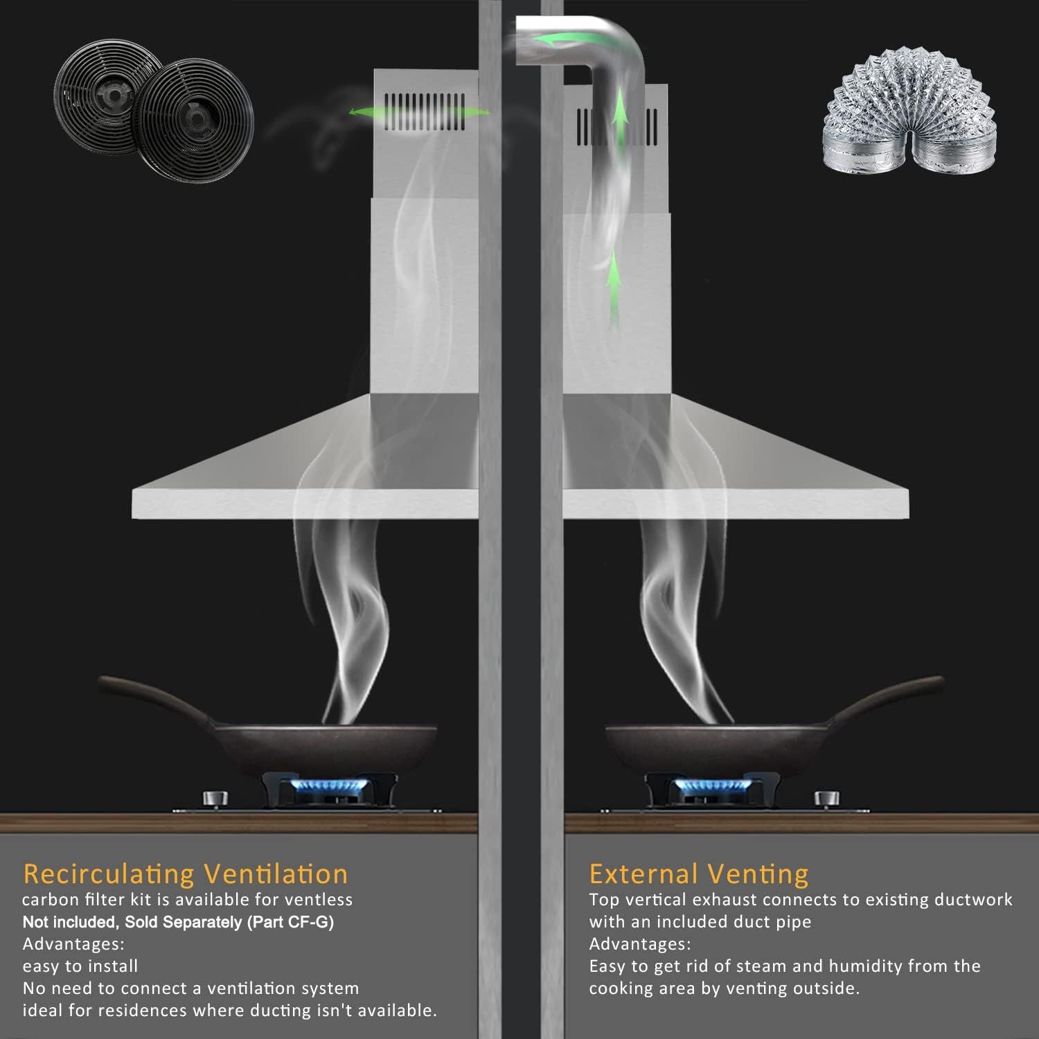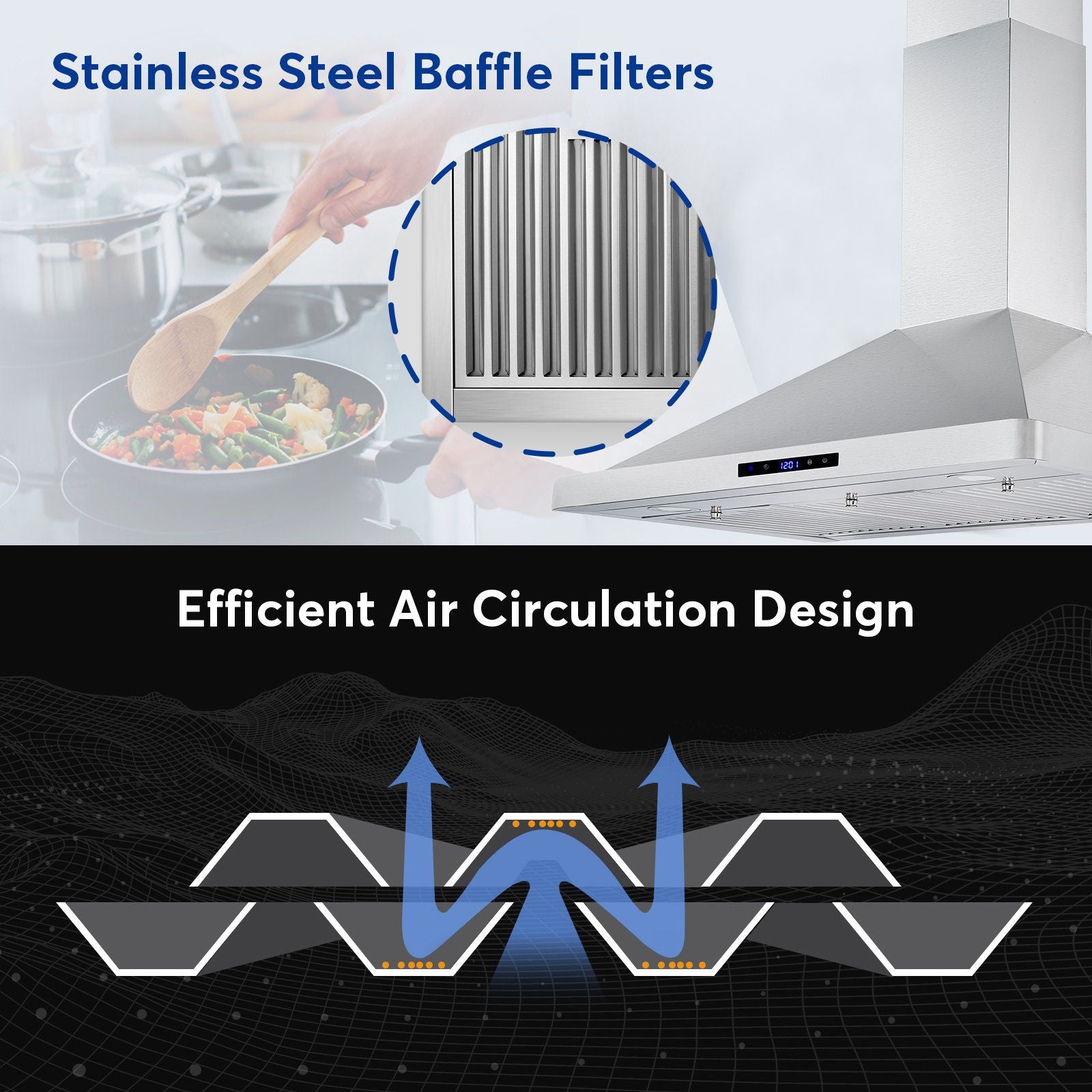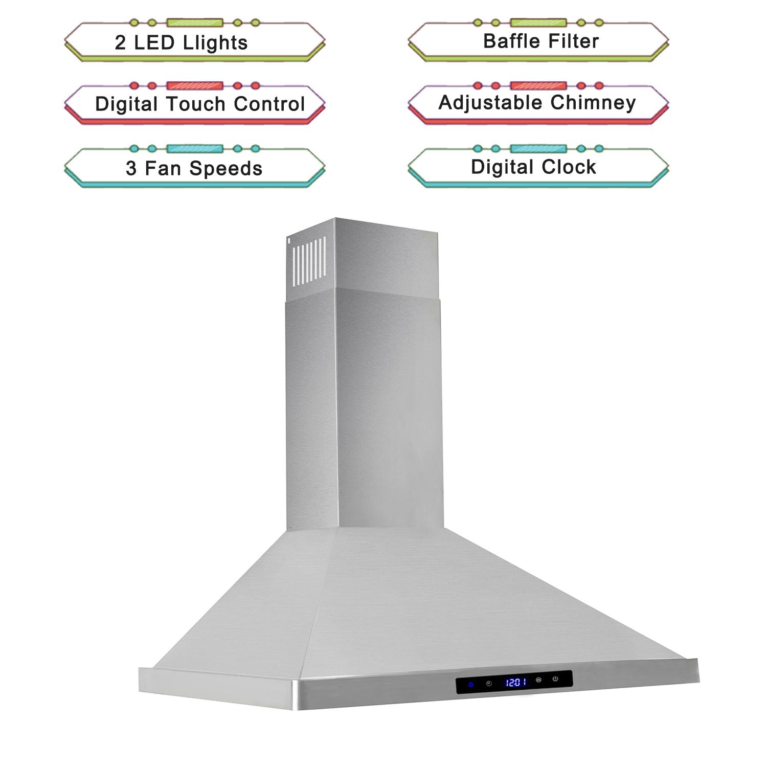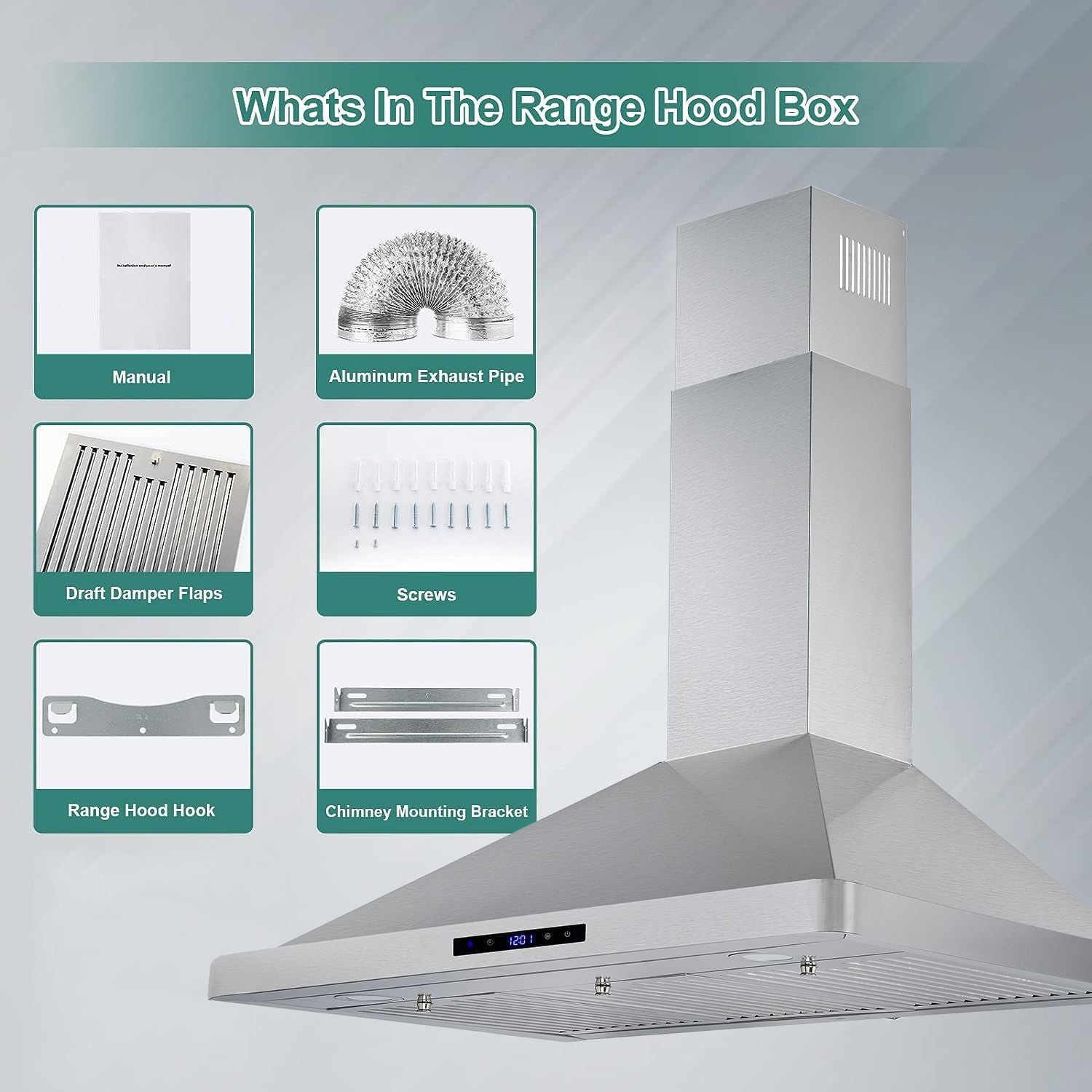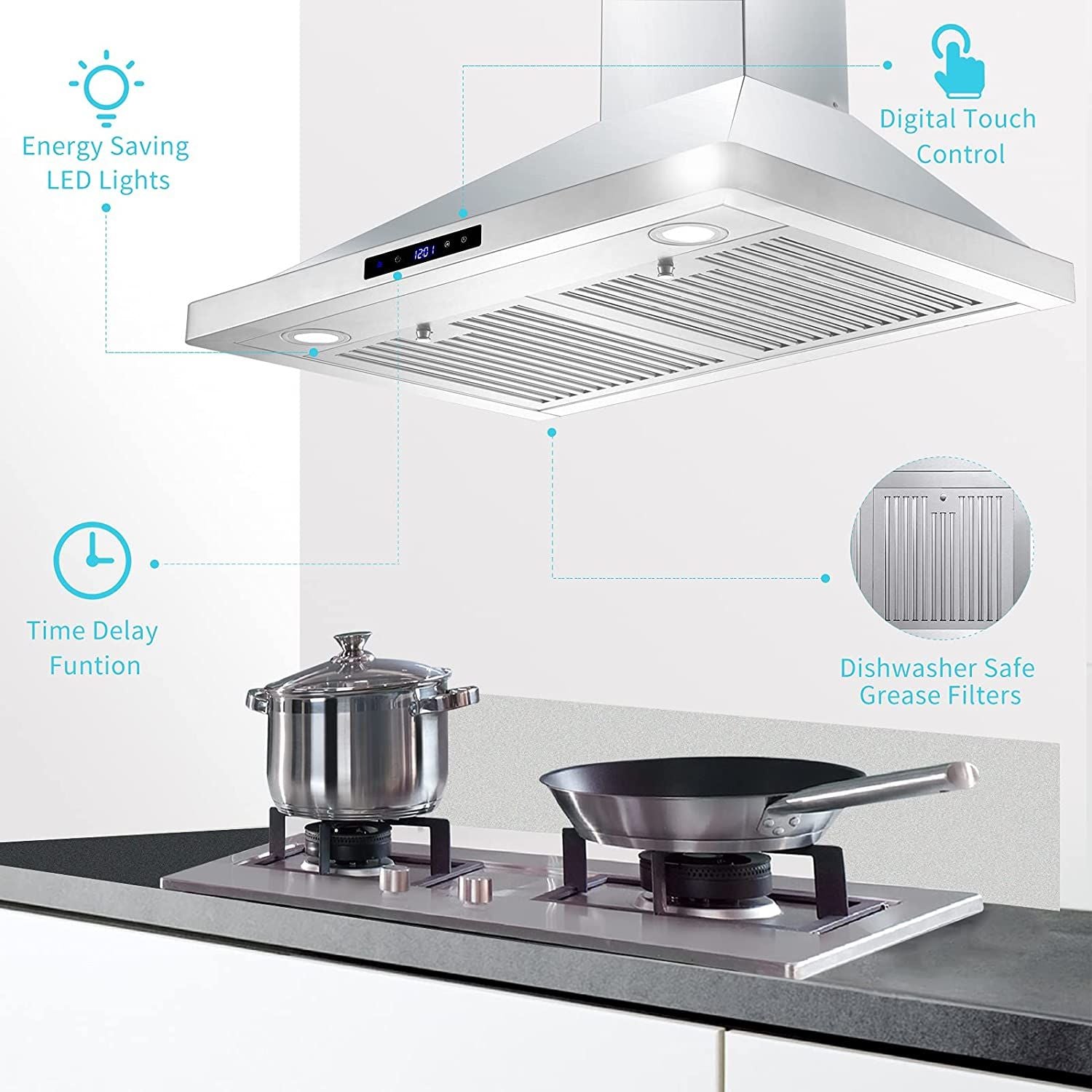 30/36 inch Range Hood 700CFM Wall Mount Stainless Steel Touch Control 3-speed Stove Vent