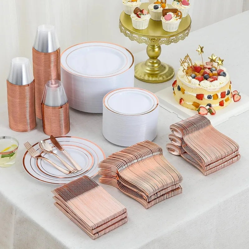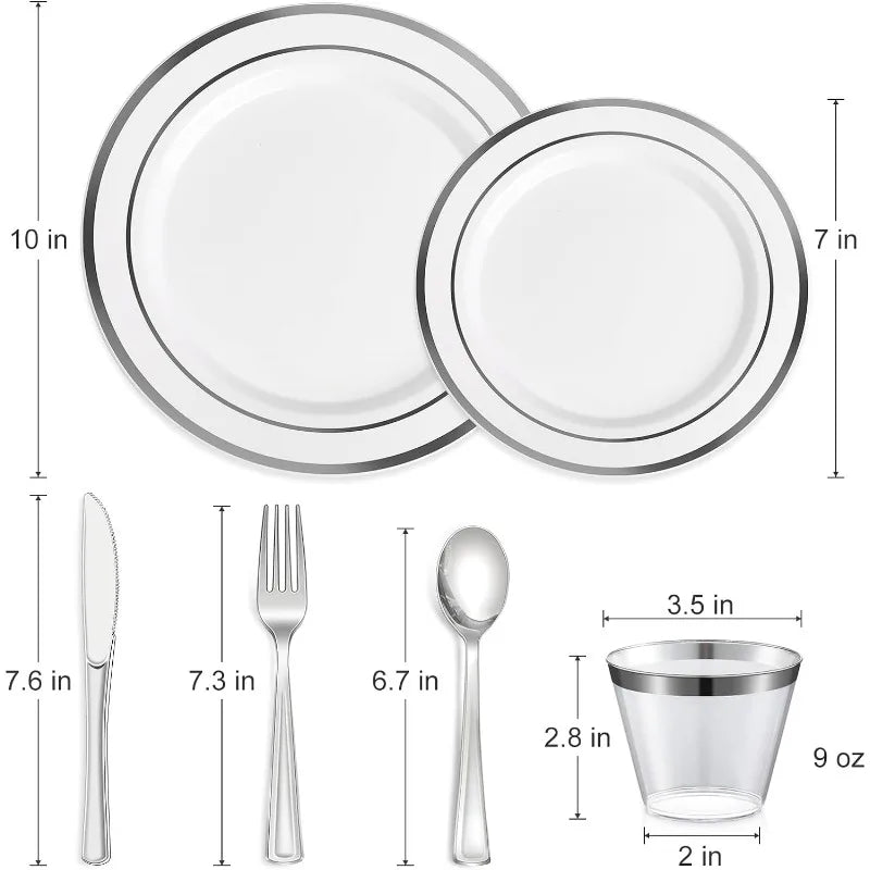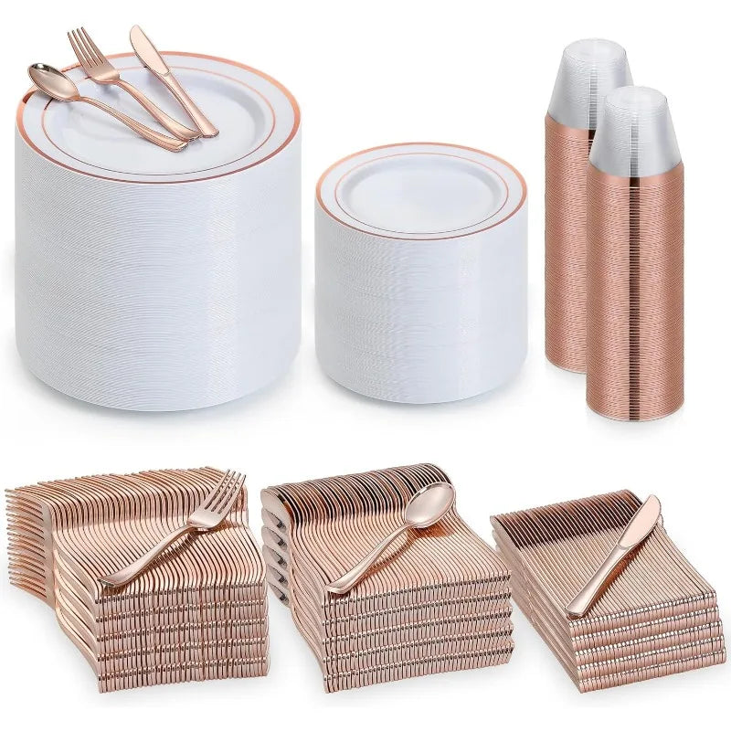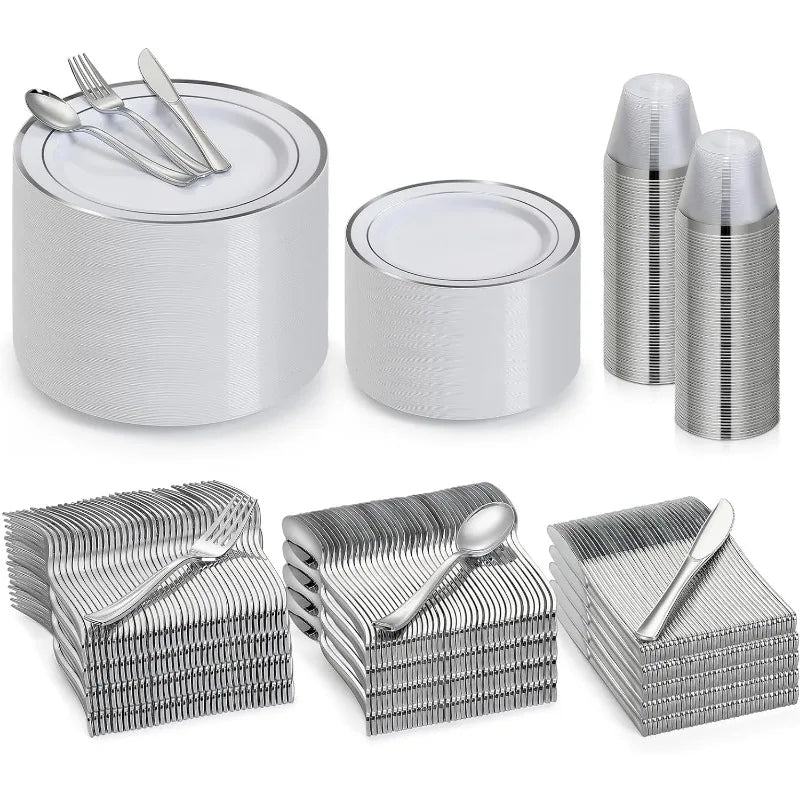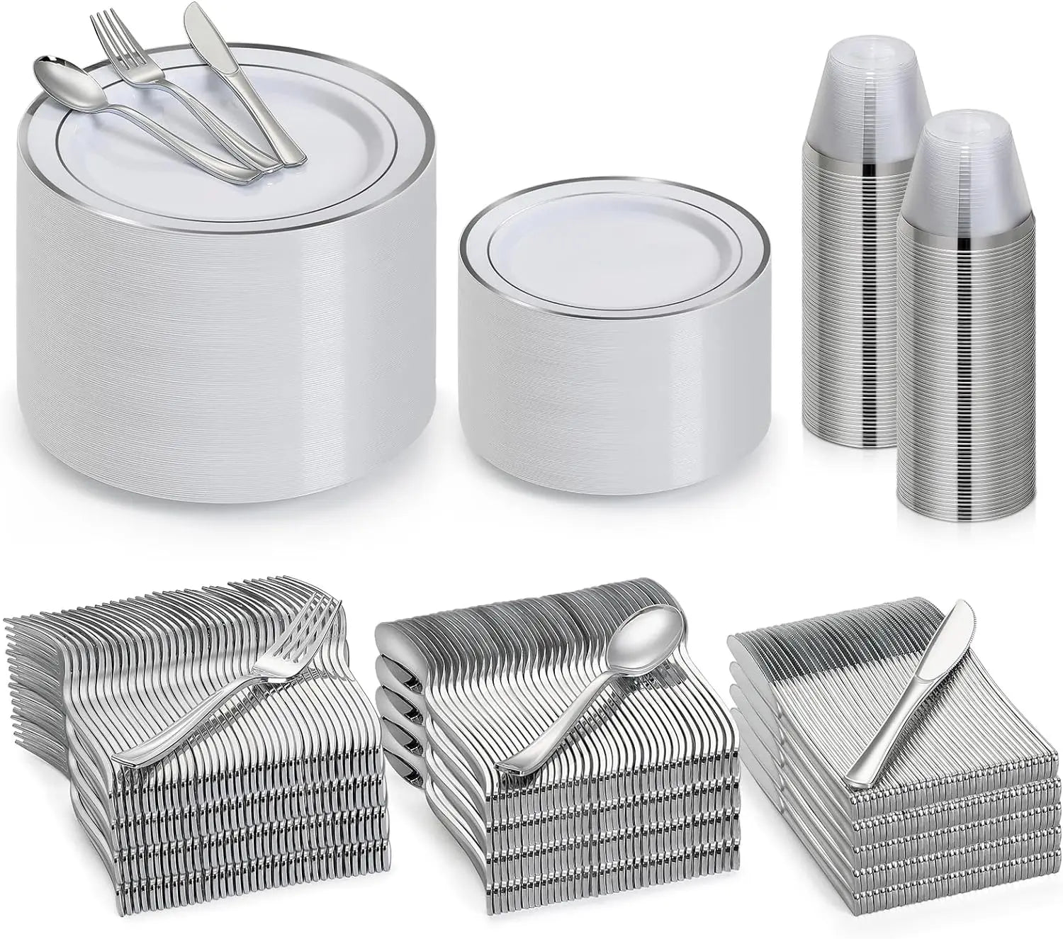 600 Pcs Plastic Dinnerware Set for 100 Guests, Disposable Plastic Plates for Party Wedding Birthday, Dinner Plates, Salad Plates