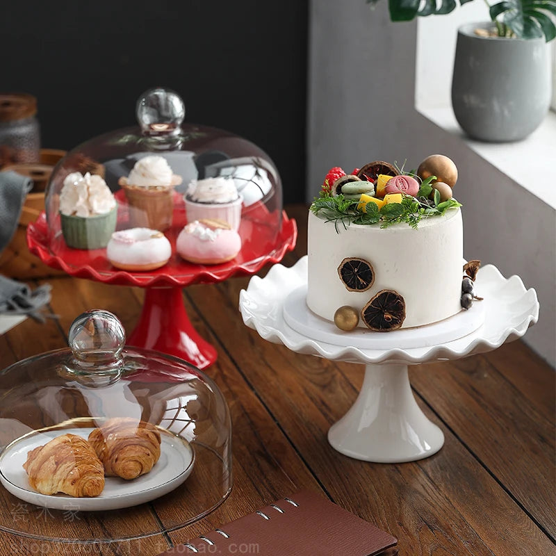Ceramic tall cake tray bread dessert table display stand wedding red afternoon tea glass cover
