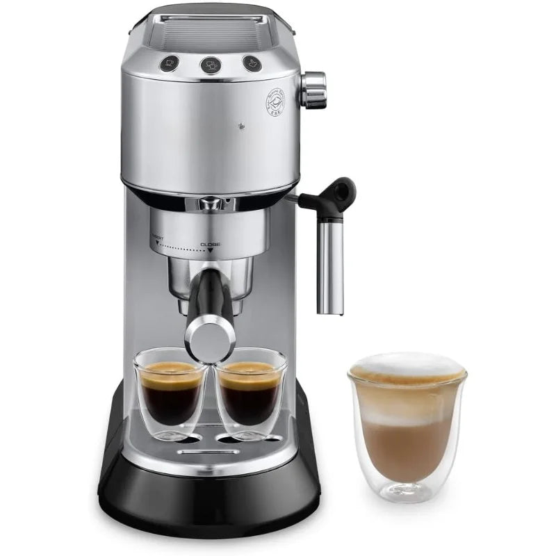 Dedica EC680M, Espresso Machine, Coffee and Cappucino Maker with Milk Frother, Metal / Stainless, Compact Design 6 in Wide