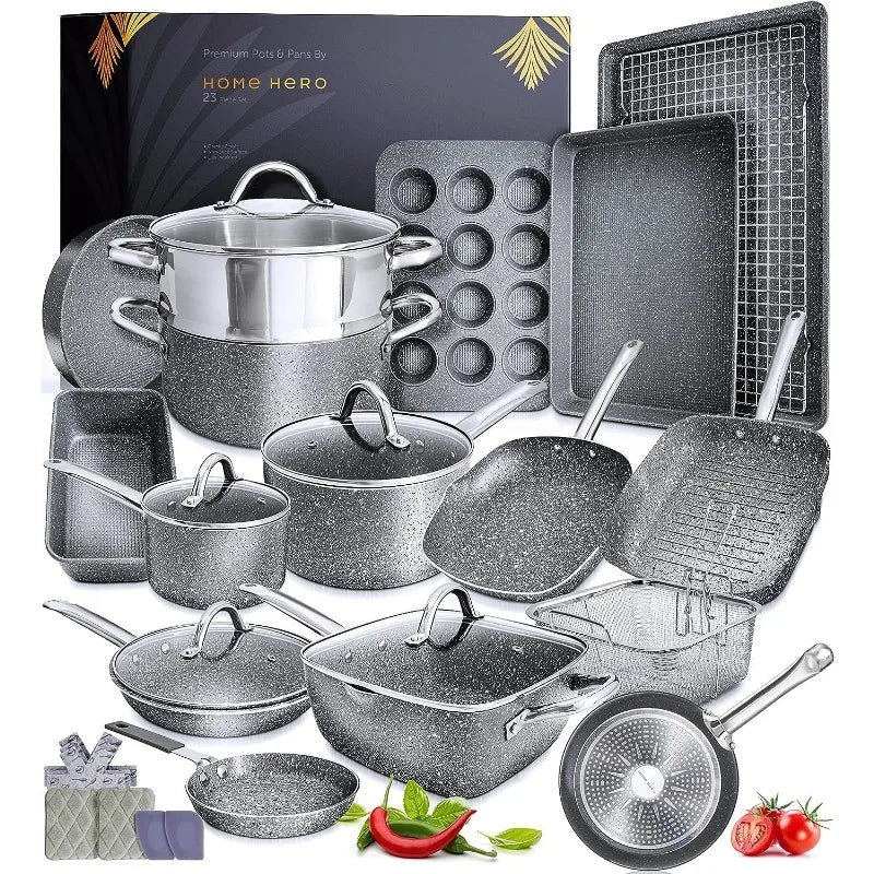 Pans Set Non Stick - Induction Compatible Kitchen Cookware Sets + Bakeware Sets - Non Stick, PFOA Free,