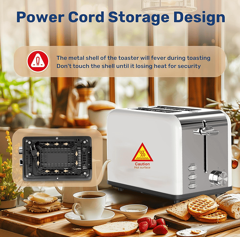 W1134P237563 White Multi-Earth Oven 2-Piece Toaster - Ultra-Wide Slot, 6 Browning Settings | Stylish High Lift Bars | Retro Stainless Steel Design