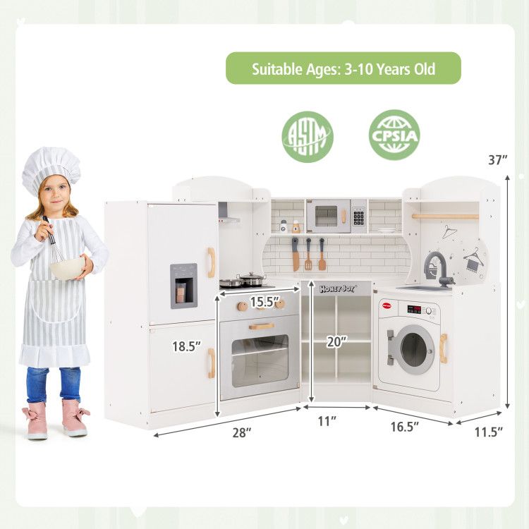 Toddler Corner Play Kitchen with Range Hood Ice Maker