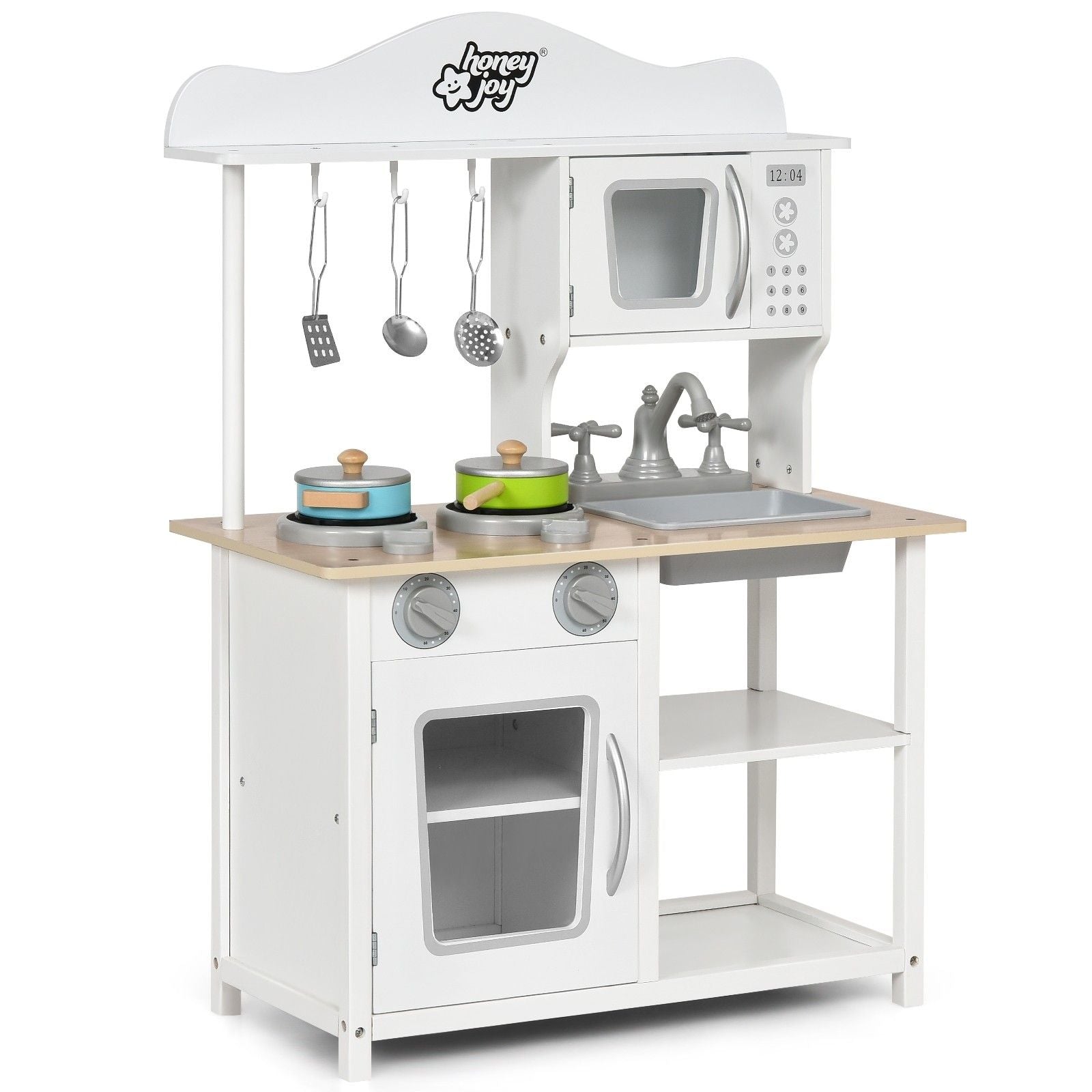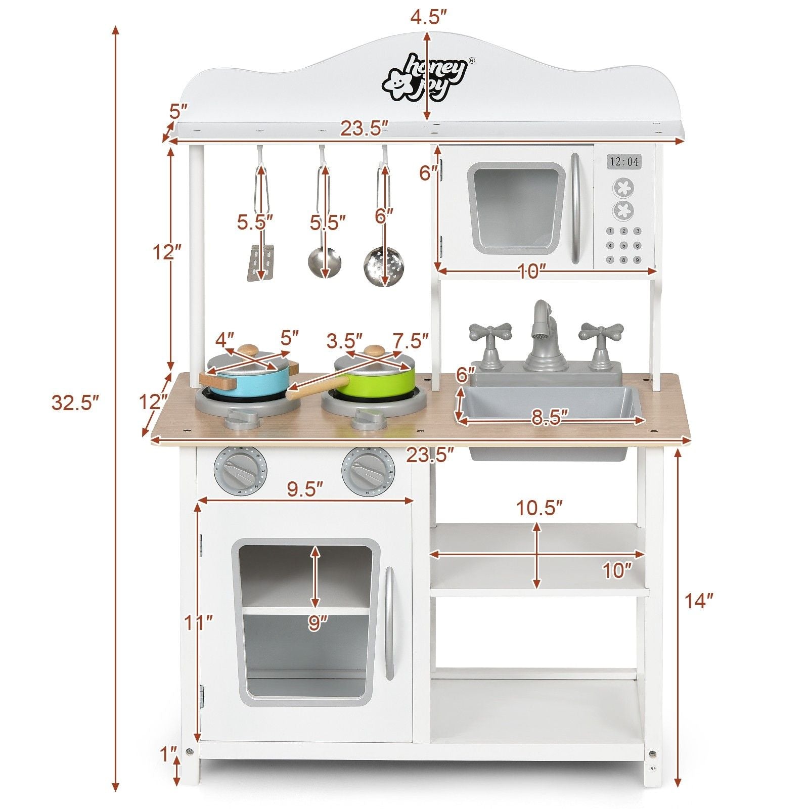 Wooden Pretend Play Kitchen Set for Kids with Accessories and Sink